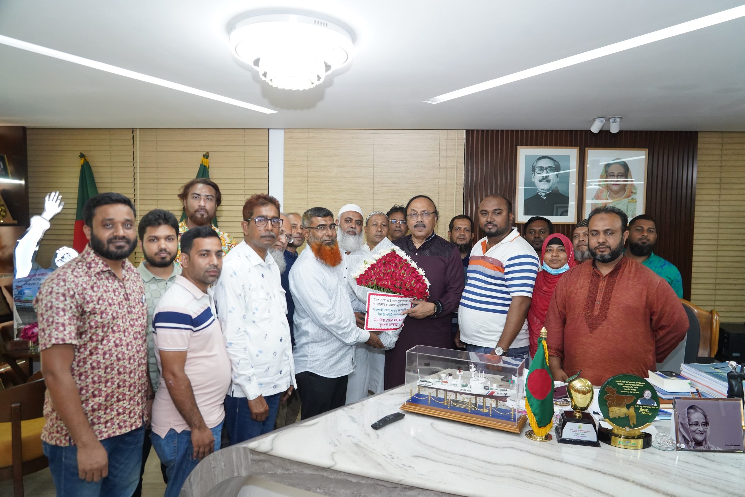 প্রেস বিজ্ঞপ্তি: বাংলাদেশ আওয়ামী লীগের সভাপতিমণ্ডলীর সদস্য ও রাজশাহী সিটি কর্পোরেশনের মাননীয় মেয়র এএইচএম খায়রুজ্জামান লিটনের সাথে সৌজন্য সাক্ষাৎ করেছেন বাংলাদেশ প্রাইভেট হাসপাতাল, ক্লিনিক এন্ড ডায়াগনস্টিক ওনার্স অ্যাসোসিয়েশনের রাজশাহী শাখার ত্রি-বার্ষিক নির্বাচনে নির্বাচিত নেতৃবৃন্দ। শনিবার রাত ৮টায় নগর ভবনে সাক্ষাৎকালে রাসিক মেয়রকে ফুলেল শুভেচ্ছা জানান নেতৃবৃন্দ।