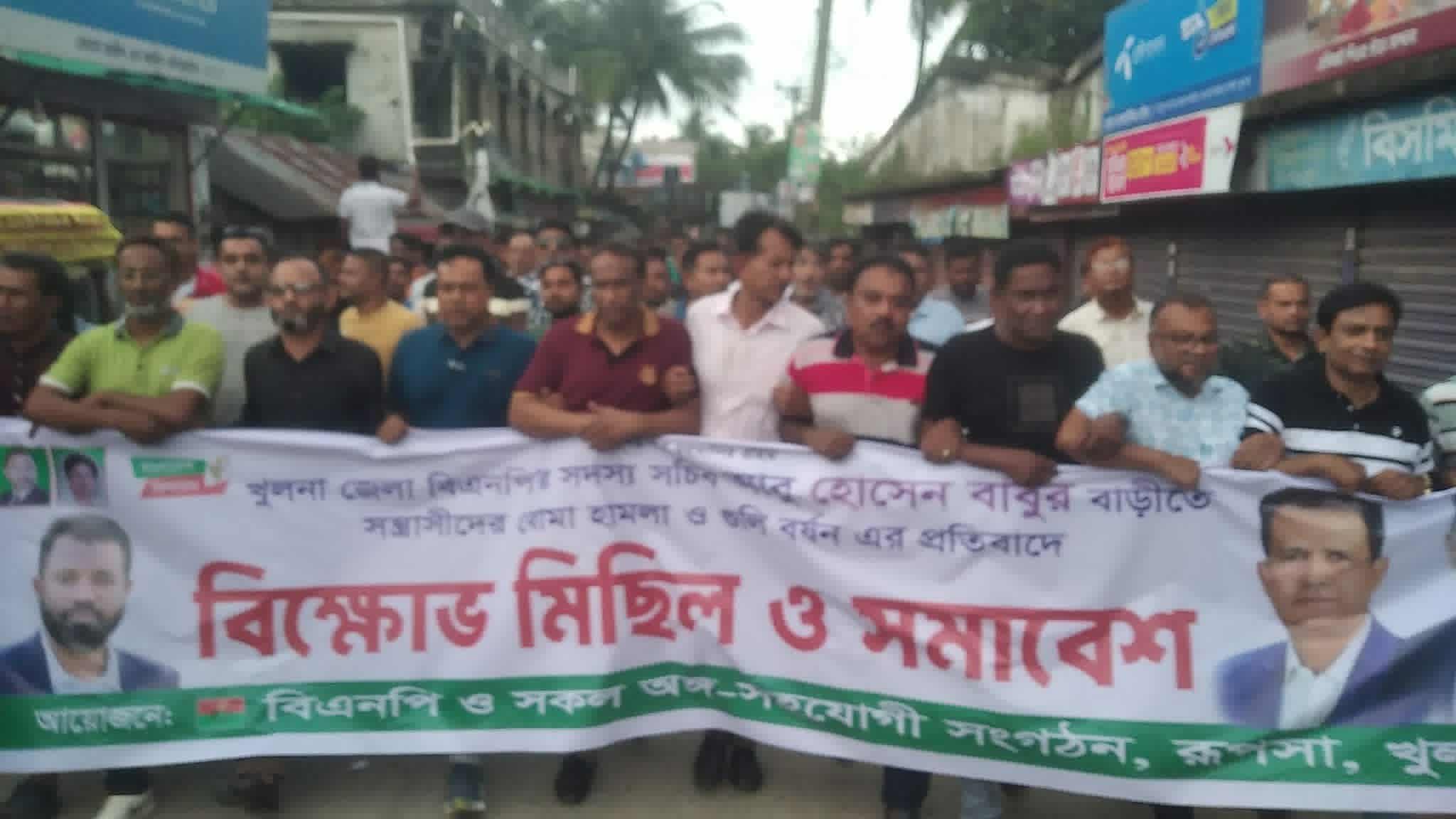 রূপসায় জেলা বিএনপির সদস্য সচিব বাবুর বাড়িতে হামলার প্রতিবাদে বিক্ষোভ মিছিল