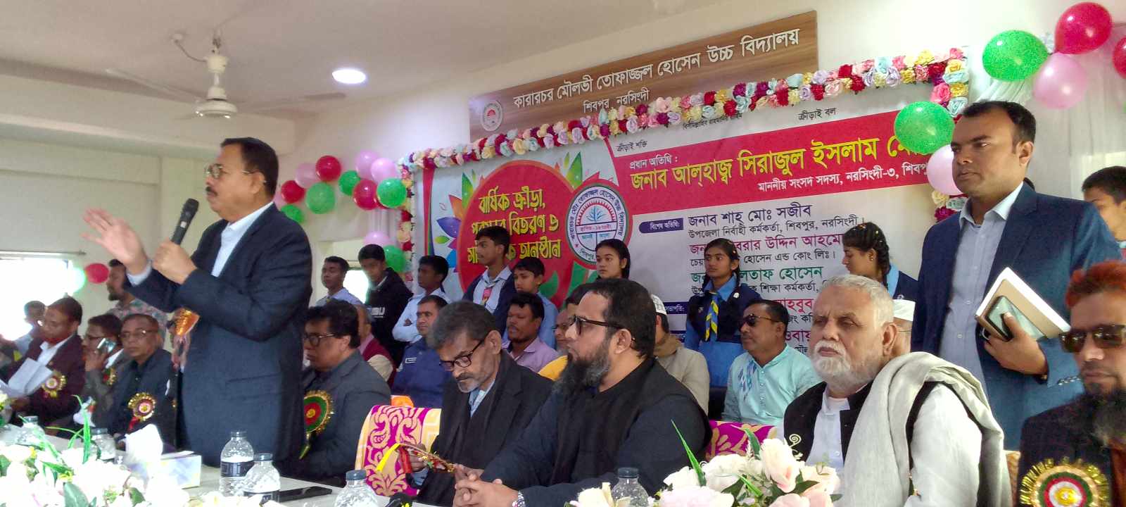 ২৭ জানুয়ারি শনিবার দুপুরে কারার চর মৌলভী তোফাজ্জল হোসেন উচ্চ বিদ্যালয় বার্ষিক ক্রিয়া প্রতিযোগিতা ২০২৪ ইং পুরস্কার বিতরণ ও সাংস্কৃতিক অনুষ্ঠান এর প্রধান অতিথি হিসেবে বক্তব্য রাখেন নরসিংদী তিন শিবপুর থেকে নির্বাচিত সংসদ সদস্য আলহাজ সিরাজুল ইসলাম মোল্লা।