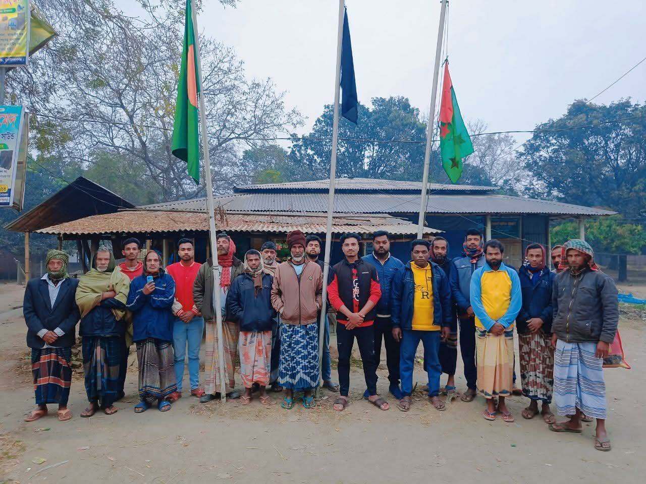 শিবগঞ্জের কয়লাদিয়াড় বাজারে একুশের প্রভাতে  নিষিদ্ধ ঘোষিত আ. লীগের দলীয় পতাকা উত্তোলন