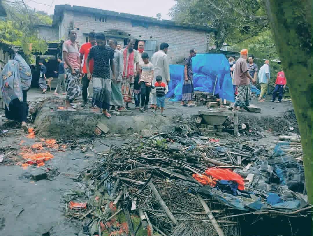 শিবগঞ্জের বাবুপুর গ্রামে ভয়াবহ অগ্নি/কা/ণ্ডে দু’টি ঘর পুড়ে ছাই, ক্ষতিগ্রস্তদের পাশে চেয়ারম্যান রবিউল ইসলাম