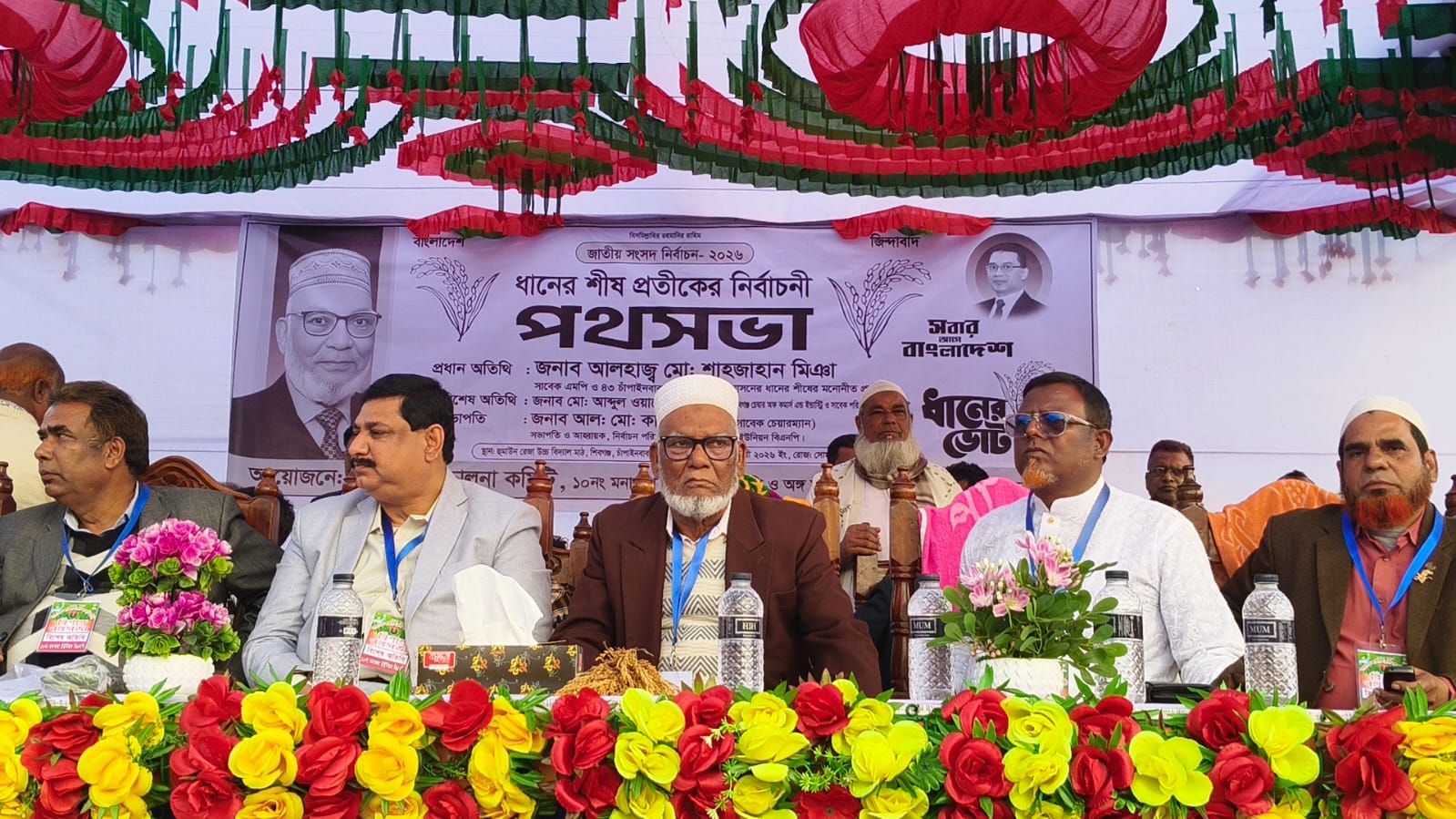 ২ ফেব্রুয়ারি (সোমবার) বিকেলে হুমায়ুন রেজা উচ্চ বিদ্যালয় ফুটবল মাঠে ইউনিয়ন বিএনপি কর্তৃক আয়োজিত নির্বাচনী সভায় প্রধান অতিথির বক্তব্য চাঁপাইনবাবগঞ্জ-১ শিবগঞ্জ আসনে বিএনপি মনোনীত প্রার্থী বীর মুক্তিযোদ্ধা অধ্যাপক মোঃ শাজাহান মিঞা আরো বলেন, মুক্তিযুদ্ধের চেতনায় স্বাধীনতা রক্ষার্থে গণতন্ত্র পুনরুদ্ধার, সুশাসন প্রতিষ্ঠা ও মানুষের অধিকার রক্ষার লক্ষ্যে ধানের শীষ প্রতীকের বিকল্প নেই। আমরা একটি বসবাসযোগ্য ও নিরাপদ বাংলাদেশ গড়ে তুলতে চাই যেখানে কোন প্রতিহিংসা ও সন্ত্রাস থাকবেনা। তাই আসুন ূলবল নির্বিশেষে স্বাধীনতা ও গণতন্ত্র রক্ষার্থে জামায়াতের জান্নাতের টিকিট বিক্রি করার বন্ধ করে ধানের শীষে ভোট দিয়ে জনগণের অধিকার রক্ষার সুযোগ দিন।