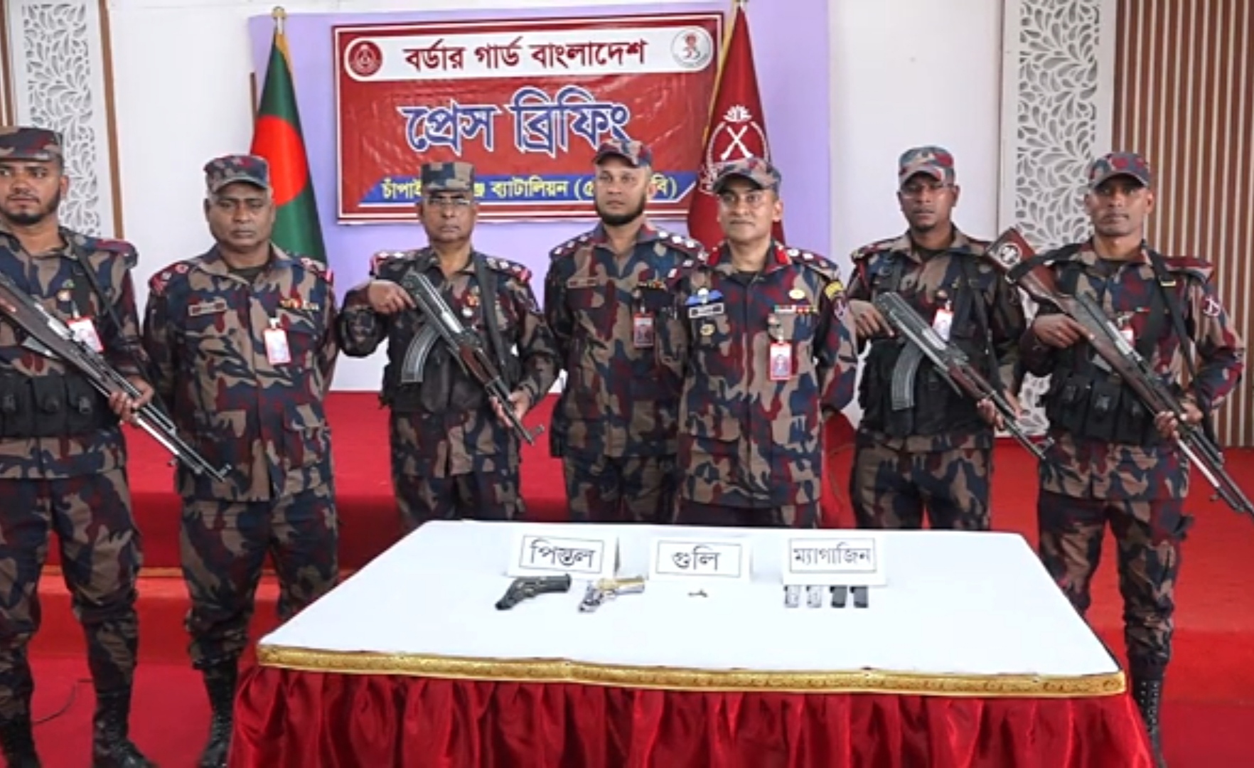 শিবগঞ্জের মাসুদপুর সীমান্তে ২ বিদেশি পিস্তলসহ গুলি ও ম্যাগাজিন উদ্ধার