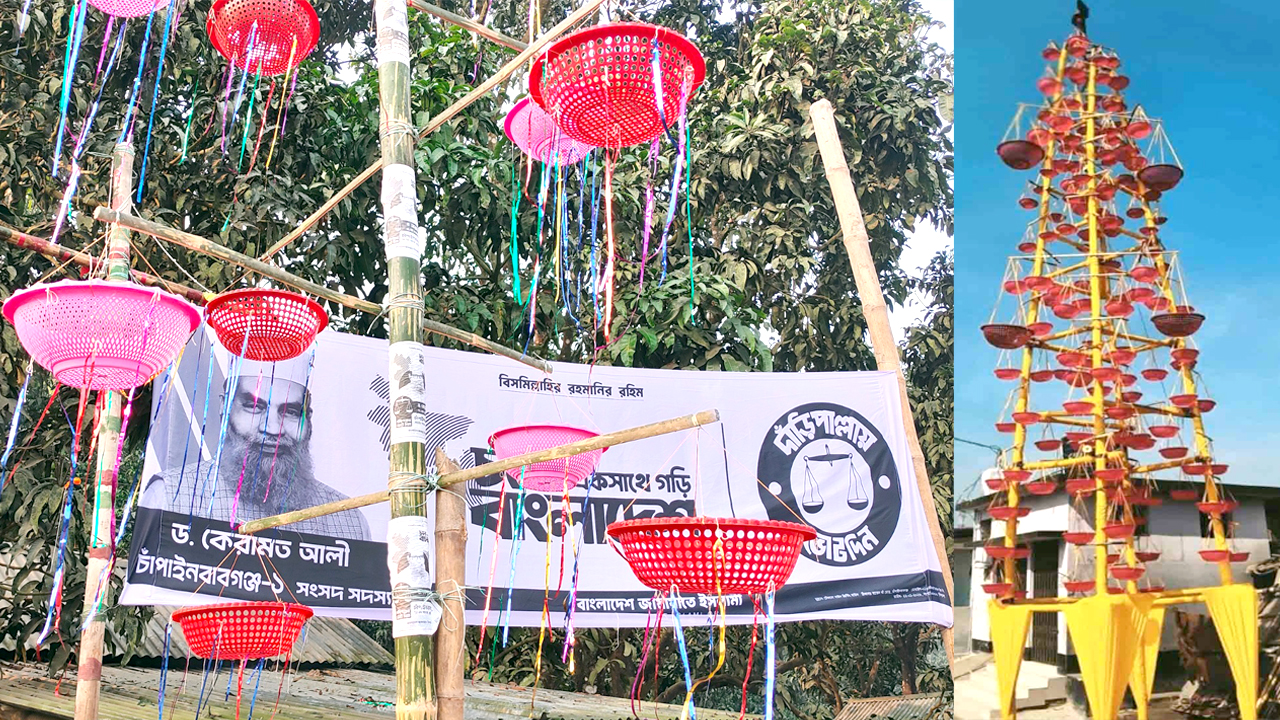 শিবগঞ্জে ক্ষমা চেয়েও জামায়াত প্রার্থী কেরামত আলী সরাননি প্লাস্টিকের দাঁড়িপাল্লা