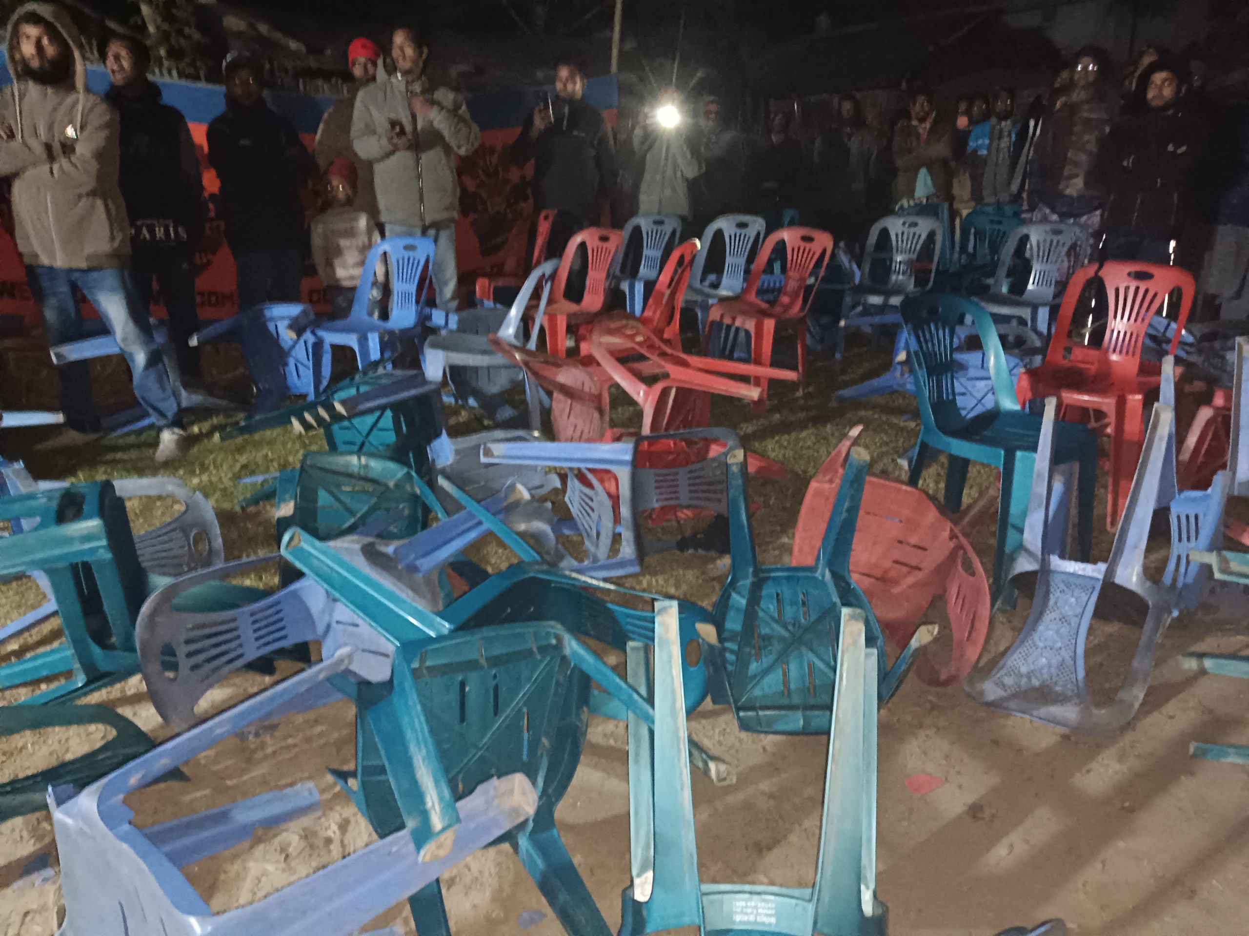 স্থানীয় সূত্রে জানা গেছে, শুক্রবার রাত সাড়ে আটটার দিকে বিনোদপুর ইউনিয়নের বাখরালী বাজারে চাঁপাইনবাবগঞ্জ ৪৩ শিবগঞ্জ ১ আসনে জামায়াত ইসলামের দাঁড়িপাল্লা প্রতীকে পথসভা চলার সময় বিএনপির ও জামায়াত ইসলামীর কয়েকজন সমর্থকদের মধ্যে প্রথমে কথা কাটাকাটি হয এবং পরে ধস্তাধস্তা ও চেয়ার ছুঁড়াছুঁড়ি হয়। এ ঘটনায় জামায়াত ইসলামীর দাঁড়িপাল্লার প্রতীকে পথসভার প্রায় ৪০টি চেয়ারভাংচুর করে। জামায়াত ইসলামীর পক্ষ থেকে দাবী করা হয়েছে যে বিএনপির সমর্থকরাই এ হামলা করেছে।