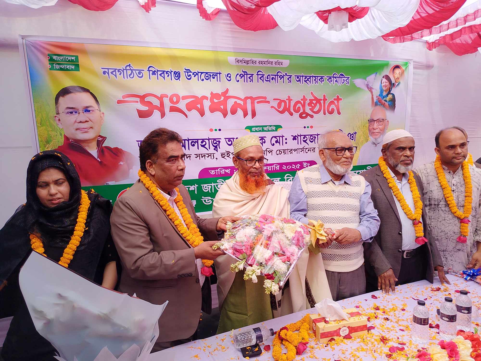 শিবগঞ্জে নবগঠিত উপজেলা ও পোর বিএনপির আহাবায়ক কমিটিকে সংবর্ধনা
