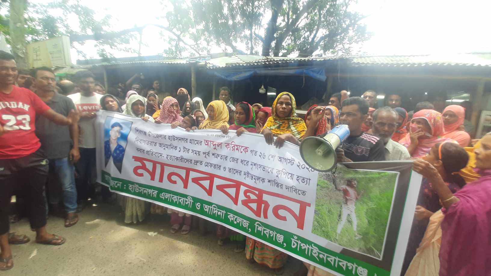 শিবগঞ্জে নবম শ্রেণীর শিক্ষার্থী করিম হত্যার প্রতিবাদে মানববন্ধন