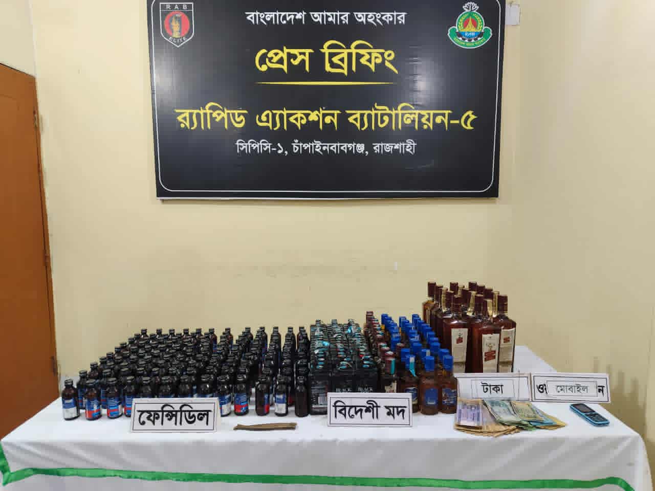 শিবগঞ্জে বিদেশি মদ ও ফেনসিডিলসহ যুবক গ্রেপ্তার
