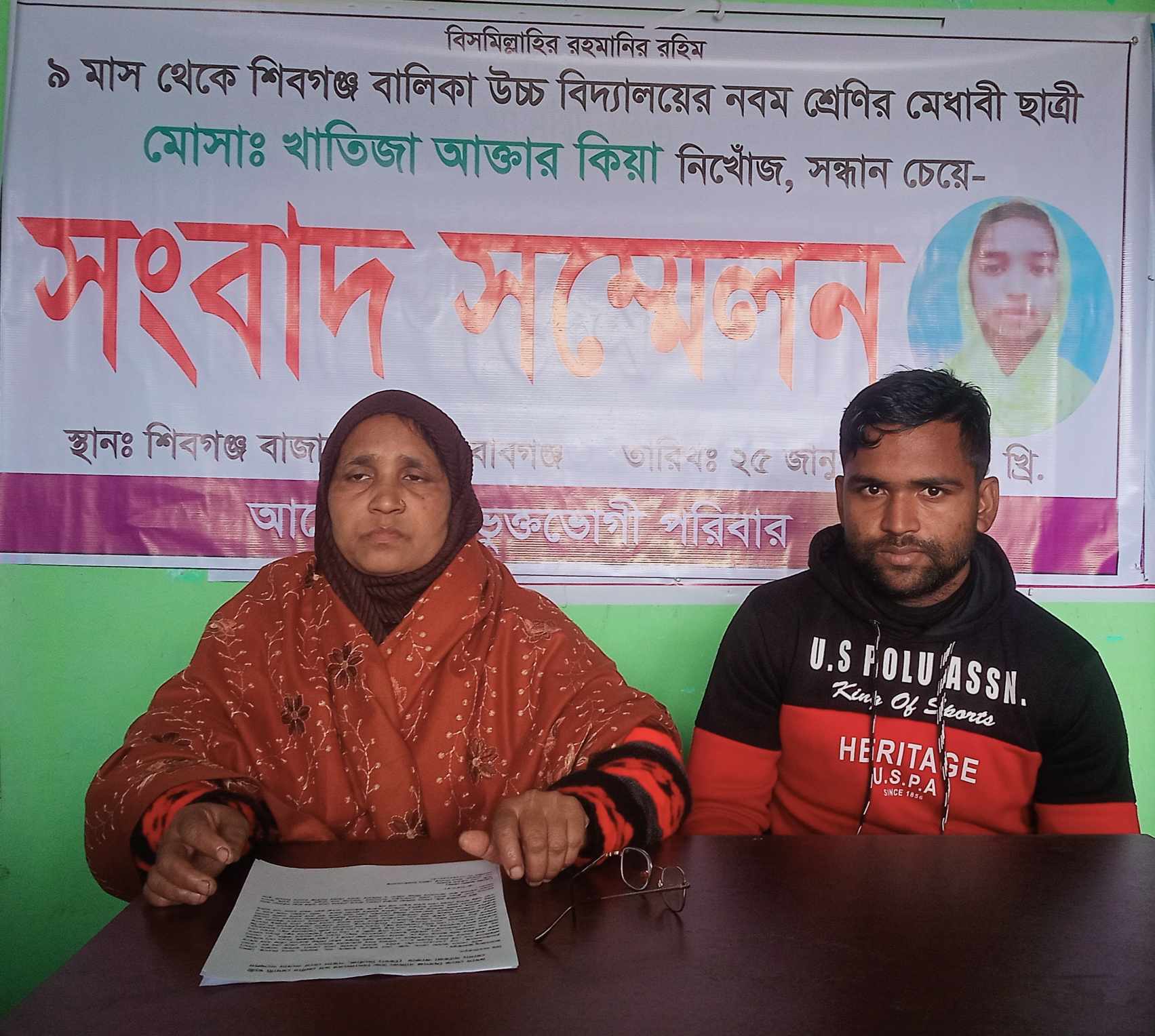 লিখিত বক্তব্যে মেয়ের মা কমেলা বেগম বলেন, গত বছরের ১৩ মে বিকেলে শিবগঞ্জ বাজারে প্রাইভেটের উদ্দ্যেশে বাড়ি হতে বের হয়ে রাস্তায় অপহরণের শিকার হয় শিবগঞ্জ বালিকা উচ্চ বিদ্যালয়ের ছাত্রী খাতিজা আক্তার কিয়া। এ নিয়ে আকাশ আলীসহ তিনজনের বিরুদ্ধে চাঁপাইনবাবগঞ্জ আদালতে একটি মামলাও করেন তিনি। মামলার তদন্তের দায়িত্ব পান শিবগঞ্জ থানার উপপরিদর্শক সোহেল রানা। মামলা দায়েরের পর থেকে অজ্ঞাত পরিচয়ে বিভিন্ন ফোন থেকে প্রাণ নাশের হুমকি দেয়া হচ্ছে বলে সংবাদ সম্মেলনে অভিযোগ করেন। হুমকি দেয়ার ঘটনায় শিবগঞ্জ থানায় একটি সাধারণ ডায়েরি করা হয়।