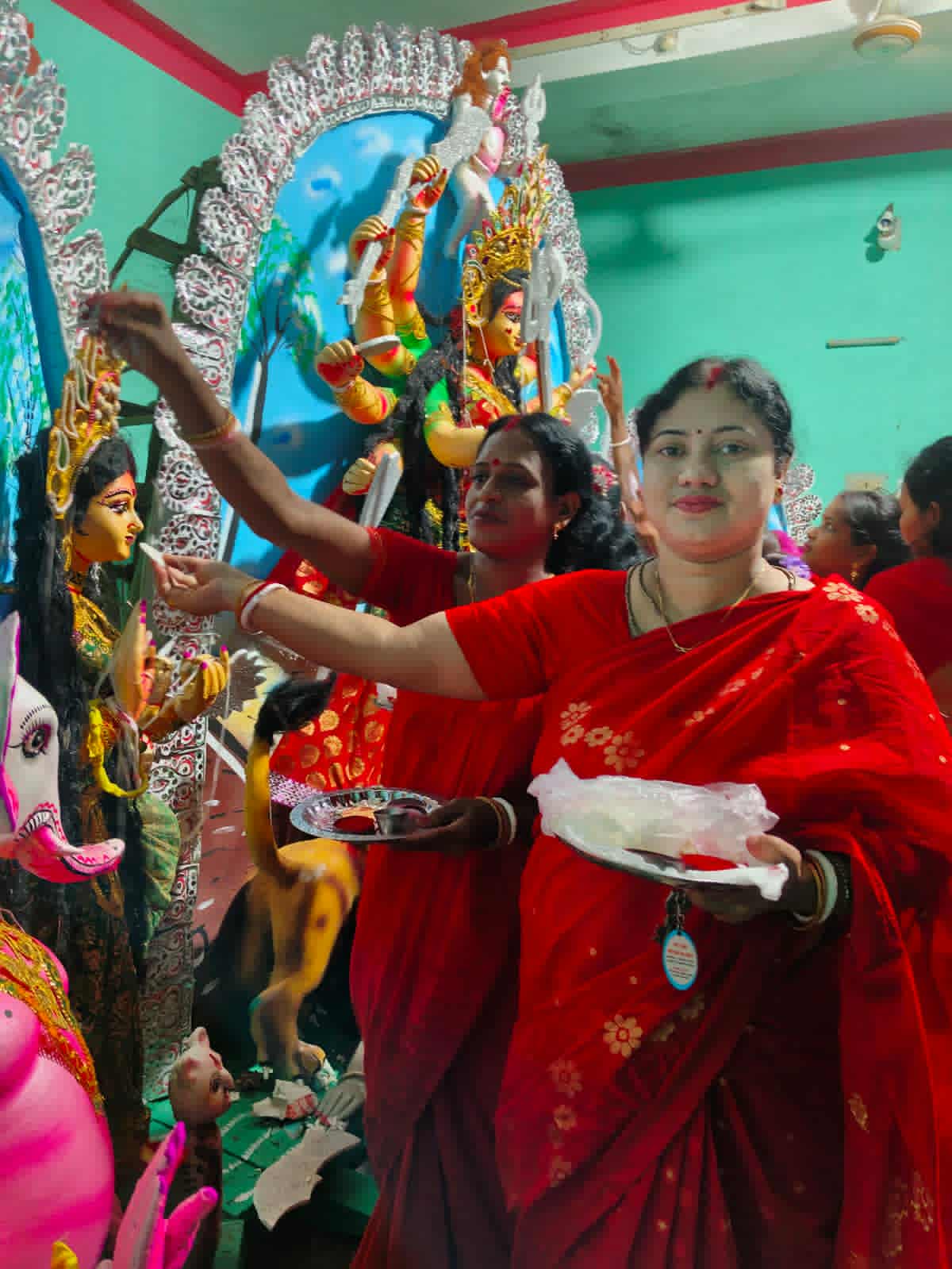 পরে ভক্তদের উচ্ছ্বাস ও শোভাযাত্রার মধ্য দিয়ে প্রতিমা নদীতে বিসর্জন দেওয়া হবে স্থানীয় পূজা উদ্যাপন পরিষদের নেতারা জানান, দুর্গাপূজা কেবল একটি ধর্মীয় অনুষ্ঠান নয়, এটি বাংলার হাজার বছরের সংস্কৃতির অংশ। সিঁদুর খেলা সেই ঐতিহ্যেরই প্রতীক, যেখানে আনন্দের পাশাপাশি থাকে বিদায়ের বেদনা।#