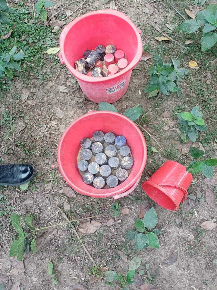 গোপন সংবাদের ভিত্তিতে র্যাবের একটি আভিযানিক দল গত ২৯ ডিসেম্বর ২০২৩ ইং তারিখ আনুমানিক রাত ৮ টার সময় চাঁপাইনবাবগঞ্জ জেলার শিবগঞ্জ থানাধীন নয়ালাভাঙ্গা ইউনিয়নের লাভাঙ্গা সুন্দরপুর এলাকায় অভিযান পরিচালনা করে একটি পরিত্যক্ত ভাঙ্গা ঘরের মধ্যে লাল রঙের ০৭টি বালতিতে ককটেল সদৃশ বস্তুর সন্ধান পায়। আভিযানিক দল তৎক্ষণাৎ এলাকাটি কর্ডন করে এবং সাধারণ জনগনকে নিরাপদ দূরত্বে সরিয়ে নেয়।