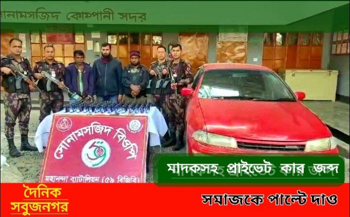 শিবগঞ্জ সোনামসজিদে বিজিবির অভিযান, মাদকসহ আটক ৩ প্রাইভেট কার জব্দ