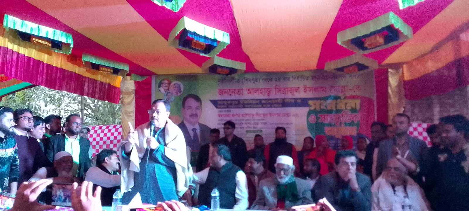 উপস্থিত জনসাধারণের উদ্দেশ্যে প্রধান অতিথি আলহাজ্ব সিরাজুল ইসলাম মোল্লা এমপি বলেন পুটিয়া ইউনিয়ন, আইয়ুবপুর ইউনিয়ন, বাঘাব ইউনিয়নের প্রতিটা ওয়ার্ড থেকে আমাকে নির্বাচিত করায় আমি আপনাদের প্রতি কৃতজ্ঞ আনন্দিত ও আমার পরিবারের পক্ষ থেকে আপনাদেরকে ধন্যবাদ জানাই। আমি আপনাদেরকে একটি কথা বলতে চাই তারা একসাথে ২০টি ভোট কেন্দ্রে যেভাবে সিল মেরেছে প্রশাসন যদি আমাদেরকে সহযোগিতা না করতো তাহলে আমি নির্বাচিত হতে পারতাম না। সেজন্য আমি প্রশাসনের প্রতিও কৃতজ্ঞ । প্রশাসন আপনাদেরকে ভোট দেওয়ার অধিকার রক্ষা করেছেন এবং আপনাদের ভোট আপনারা দিতে সহযোগিতা করেছেন। আমি নির্বাচিত হয়েছি বলে এখন আমি সকলের এমপি । আমি আপনাদের উপস্থিতি দেখে অত্যন্ত আনন্দিত হয়েছি। আপনাদের উন্নয়নের ব্যাপারে যে সমস্ত দাবি করেছেন, মসজিদ ,মন্দির , ঈদগা, কবরস্থান , পাকা রাস্তা মেরামত সহ সকল উন্নয়নমূলক কর্মকাণ্ড সমাপ্ত করতে চেস্টা ক রবো ইনশাল্লাহ।