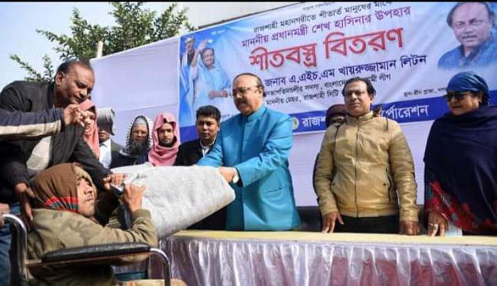 রাজশাহীতে শীতবস্ত্র নিয়ে শীতার্ত মানুষের পাশে দাঁড়িয়েছেন বাংলাদেশ আওয়ামী লীগের সভাপতিমন্ডলীর সদস্য ও রাজশাহী সিটি কর্পোরেশনের মেয়র এ.এইচ.এম খায়রুজ্জামান লিটন। বৃহস্পতিবার দুপুরে পৃথক দুটি প্রোগ্রামের মাধ্যমে সাড়ে তিন হাজার অসহায় মানুষের মাঝে কবল বিতরণ করেন রাসিক মেয়র এ.এইচ.এম খায়রুজ্জামান লিটন।বেলা ১২টায় নগর ভবনের গ্রিনপ্লাজায় শীতার্ত মানুষের মাঝে শীতবস্ত্র বিতরণ প্রধানমন্ত্রী শেখ হাসিনার উপহার শীতবস্ত্র বিতরণ কর্মসূচির আয়োজন করে রাজশাহী সিটি কর্পোরেশন।