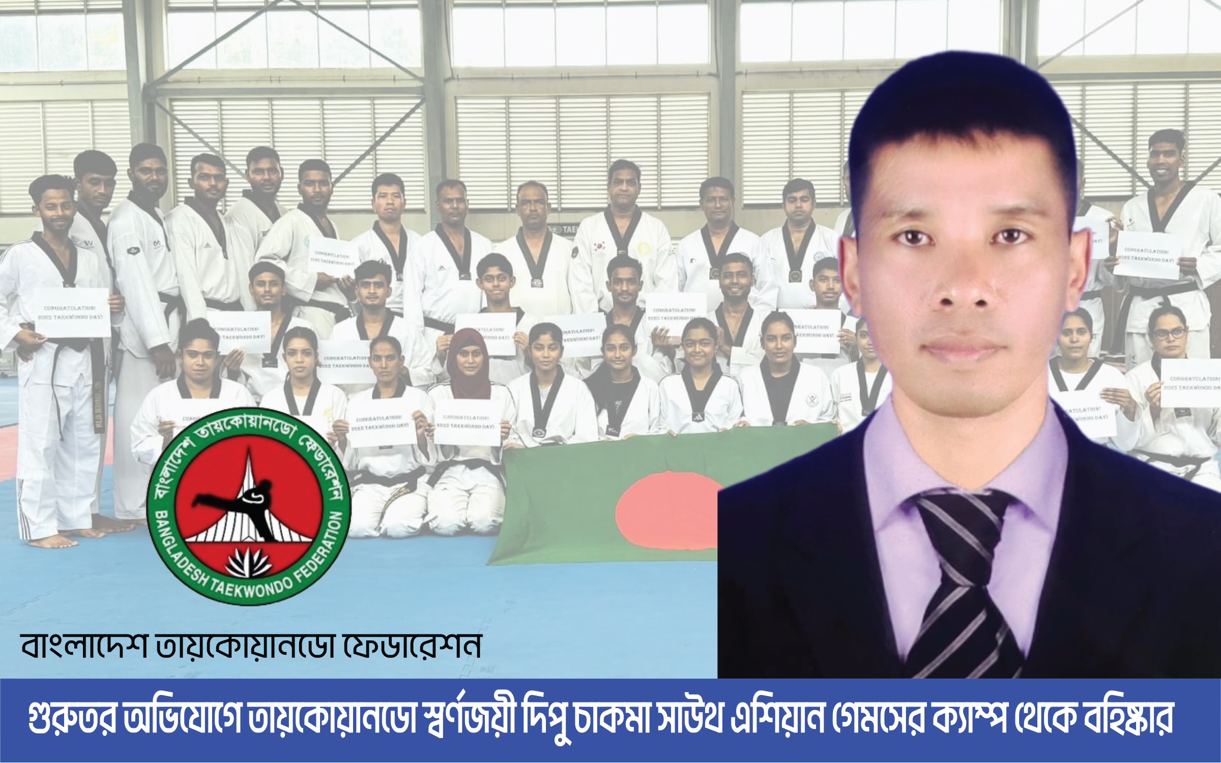 নূরুল ইসলাম, ক্রীড়া প্রতিবেদন ঃ আসন্ন সাউথ এশিয়ান গেমসের প্রস্তুতির চেয়ে ব্যক্তিগত বিশৃঙ্খলাকেই বড় করে তুলেছিলেন দিপু চাকমা। কোচের নির্দেশনা অমান্য করা, ক্যাম্পে গ্রুপিং করে বিদ্রোহের চেষ্টা, এমনকি বিদেশি কোচকে বার্তা লেখে বিব্রত করার মতো গুরুতর সব অভিযোগ উঠেছে তার বিরুদ্ধে। সেই সাথে নারী নির্যাতন মামলার ওয়ারেন্টভুক্ত আসামি হওয়ার মতো চাঞ্চল্যকর তথ্য বেরিয়ে এসেছে। সব মিলিয়ে জাতীয় তায়কোয়ানডো প্রশিক্ষণ ক্যাম্পের শৃঙ্খলা যখন ভেঙে পড়ার উপক্রম, তখনই কঠোর অবস্থানে গেল তায়কোয়ানডো ফেডারেশন। ২০১৯ সালের সাউথ এশিয়ান গেমসের স্বর্ণজয়ী এই খেলোয়াড়কে ক্যাম্প থেকে স্থায়ীভাবে অপসারণ করা হয়েছে।