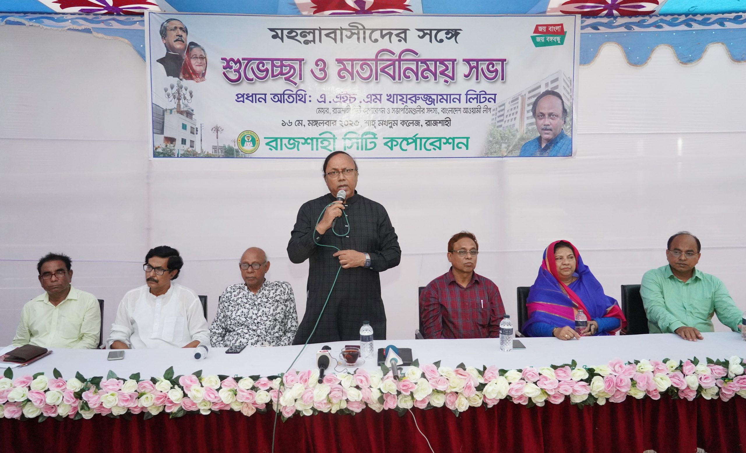 রাজশাহী মহানগরীর বিভিন্ন মহল্লার সিডিসির সদস্যবৃন্দের সঙ্গে শুভেচ্ছা ও মতবিনিময় সভা অনুষ্ঠিত হয়েছে। মঙ্গলবার বিকেরে শাহমখদুম কলেজ প্রাঙ্গণে আয়োজিত মতবিনিময় সভায় প্রধান অতিথি হিসেবে উপস্থিত ছিলেন বাংলাদেশ আওয়ামী লীগের সভাপতিমন্ডলীর সদস্য ও রাজশাহী সিটি কর্পোরেশনের মাননীয় মেয়র এ.এইচ.এম খায়রুজ্জামান লিটন। সভায় সভাপতিত্ব করেন রাজশাহী মহানগর আওয়ামী লীগের ভারপ্রাপ্ত সভাপতি বীর মুক্তিযোদ্ধা মোহাম্মদ আলী কামাল।