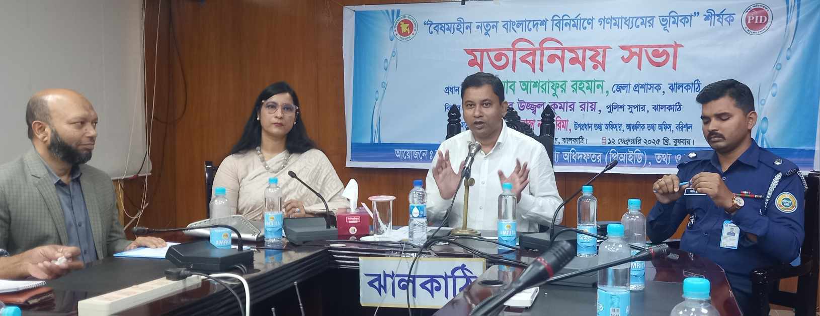 বুধবার (১২ ফেব্রুয়ারী) বিকাল ৩.টায় জেলা প্রশাসক কার্যালয়ের হলরুমে “বৈষম্যহীন নতুন বাংলাদেশ বিনির্মাণে গণমাধ্যমের ভুমিকা” শীর্ষক মতবিনিময় সভায় প্রধান অতিথি হিসাবে এসব কথা বলেন জেলা প্রশাসক আশরাফুর রহমান। বরিশাল আঞ্চলিক তথ্য অফিসের উপপ্রধান মোছা: আফরোজা নাইচ রিমার সভাপতিত্বে বিশেষ অতিথি হিসাবে উপস্থিত ছিলেন অতিরিক্ত পুলিশ সুপার (সদর সার্কেল) মোহিতুল ইসলাম।
