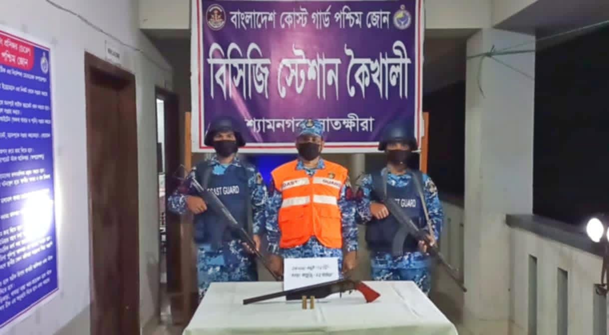 তিনি বলেন, গোপন সংবাদের ভিত্তিতে গত ৩০ জুলাই ২০২৫ তারিখ বুধবার বিকাল ৪ টায় কোস্ট গার্ড স্টেশন কৈখালী কর্তৃক সাতক্ষীরা জেলার শ্যামনগর থানাধীন মামুন্দী নদী সংলগ্ন এলাকায় একটি বিশেষ অভিযান পরিচালনা করা হয়। অভিযান চলাকালীন অভিযানিক দল একজন সন্দেহজনক ব্যক্তিকে থামার সংকেত প্রদান করে। উক্ত ব্যক্তি সংকেত অমান্য করে পালানোর চেষ্টা করলে অভিযানিক দল আত্মসমর্পণ আহ্বানের উদ্দেশ্যে ২ রাউন্ড ফাঁকা গুলি ছোঁড়ে। এসময় সন্দেহজনক ব্যক্তি তার সঙ্গে থাকা একটি ব্যাগ ফেলে বনের ভেতর পালিয়ে যায়। পরবর্তীতে ব্যাগটি তল্লাশি চালিয়ে ১ টি একনলা বন্দুক ও ২ রাউন্ড তাজা কার্তুজ উদ্ধার করা হয়। জব্দকৃত অস্ত্র ও গোলাবারুদের পরবর্তী আইনানুগ ব্যবস্থা গ্রহণের কার্যক্রম প্রক্রিয়াধীন রয়েছে।