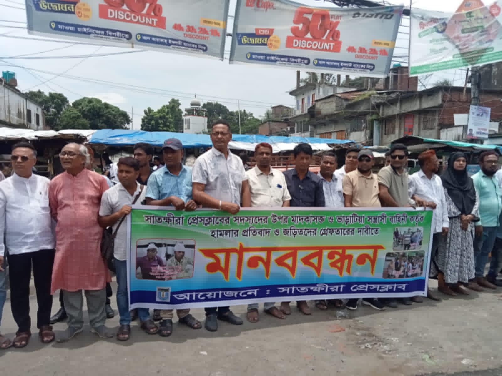 সাতক্ষীরা প্রেসক্লাবের সাংবাদিকদের উপর সস্ত্রাসী হামলার প্রতিবাদে মানববন্ধন