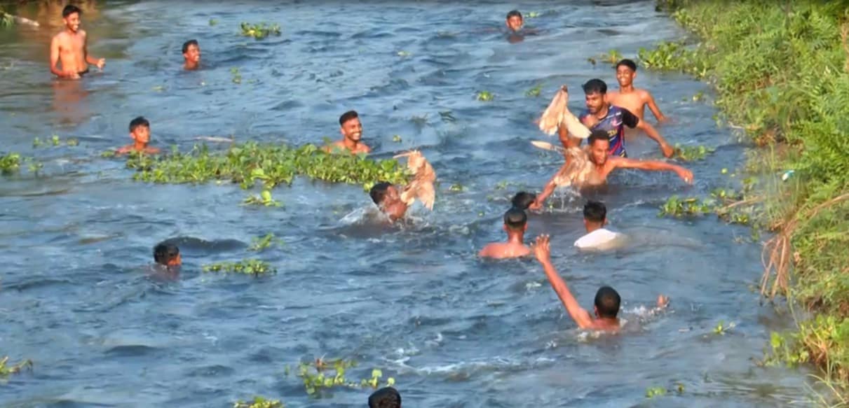 সোনারগাঁয়ে পুকুর রক্ষায় ঐতিহ্যবাহী ‘হাঁস ধরা’ খেলা অনুষ্ঠিত