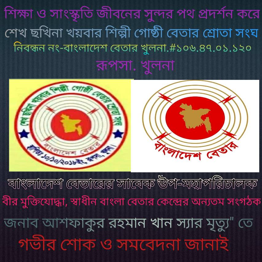 এ দিকে তাঁর মৃত্যু"তে গভীর দুঃখ ও শোক প্রকাশ করেছেন.শিক্ষা ও সাংস্কৃতি জীবনের সুন্দর পথ প্রদর্শন করে, এই প্রতিপাদ্য নিয়ে ২০১৮ সাল থেকে আজ পর্যন্ত সফলভাবে এগিয়ে চলেছে" বাংলাদেশ বেতার, খুলনা কতৃক নিবন্ধিত ইসলামী সাংস্কৃতিক সংগঠন. শেখ ছখিনা খয়বার শিল্পী গোষ্ঠী বেতার শ্রোতা সংঘ. রূপসা, খুলনা। প্রতিষ্ঠাতা সভাপতিঃ গীতিকার ও সুরকার ইসলামী সংগীত ক্বারীঃ শেখ মোঃ শহিদুল্লাহ্ আল আজাদ, সাধারণ সম্পাদকঃ এস. আসাদুজ্জামান, প্রধান উপদেষ্টাঃ এ্যাডঃ এস,এম মোস্তাফিজুর রহমান মোশতাক, সহ সম্পাদকঃ মোঃ ওমর ফারুক রাসেল, সভাপতি মন্ডলির সদস্যঃ মোঃ রেজাউল করিম গাজী. মোঃ ওহিদুজ্জামান, সাংবাদিক রাজু আহমেদ খান শহিদ, মোঃ খবীরুদ্দীন, মোসাঃ আকলিমা খাতুন, ধর্ম বিষয়ক সম্পাদকঃ মোঃ হাবিবুর ইসলাম বেলালী. শিক্ষা বিষয়ক সম্পাদকঃ আবদুল্লাহ্ বিন আবজাল, সাংস্কৃতিক বিষয়ক সম্পাদকঃ মোসাঃ সুমাইয়া শহিদ সহ শেখ ছখিনা খয়বার নির্বাহী পরিবারের সদস্যঃ মোঃ ইব্রাহিম খান, মোসাঃ রাবেয়া সুলতানা, মোসাঃ সুরাইয়া রহমান তুষা, তামান্না আক্তার বৈশাখী, আসাদুল্লাহ সিয়াম. সাকিবুল ইসলাম, মোসাঃ আফসানা আক্তার মিম, মোসাঃ আছিয়া আক্তার, মোয়াজ মাহমুদ, আহসান হাবীব, নিরব হাওলাদার, রবিউল ইসলাম গাজী, জি এম রাকিব হোসেন, হাফিজুর রহমান, আবু রায়হান গাজী, মোঃ বেল্লাল শেখ" মোঃ আব্দুস সোবহান শেখ, মোঃ নওশের শেখ" মোঃ আবু আহাদ শেখ, মাহাদী হাসান রিয়াদ, নুসাইব বীন শহিদুল ফরাজি, এফ এম বোরহান, মোঃ সাকিব হোসেন রাজ প্রমুখ।#