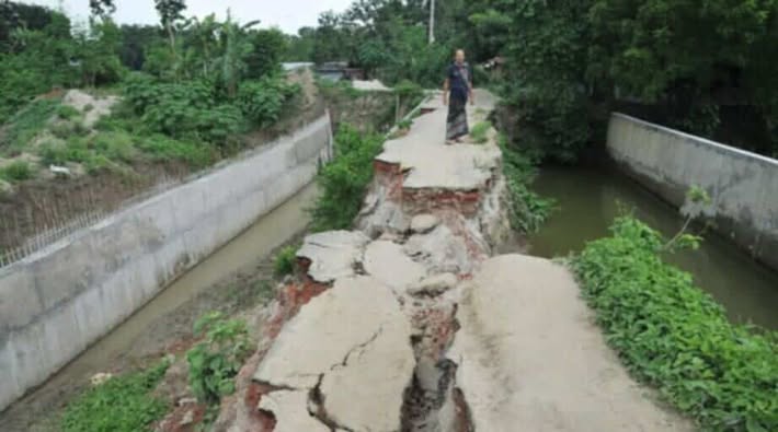 জানারুল ইসলাম নামের আরেক ব্যক্তি বলেন, ‘গত প্রায় এক মাস আগে রাস্তার কাজ শেষ করা হয়েছে। কিন্তু প্রটেকশন ওয়ালের কাজ শেষ করা হয়নি।প্রটেকশনের ওয়ালের নিচে মাটিও দেওয়া হয়নি। এ কারণে বর্ষায় রাস্তার বেশকিছু অংশ ভেঙে গেছে আবার একটি অংশ দেবে গেছে। এতে করে দুই গ্রামের শত শত মানুষের চলচাল বন্ধ হয়ে গেছে। এর বাইরেও অন্যান্য এলাকার মানুষও চলাচল করেন এই রাস্তা দিয়ে। এখন কেউ চলাচল করতে পারছেন না।