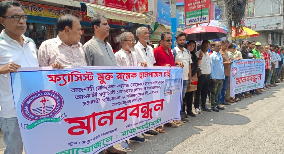 জিয়াউল কবীর, (স্টাফ রিপোর্টার): রাজশাহী মেডিকেল কলেজ (রামেক) হাসপাতালে দীর্ঘদিন ধরে চলা টেন্ডারবাজি, নিয়োগ বাণিজ্য ও সিন্ডিকেট শাসনের অবসান ঘটিয়ে হাসপাতালকে ‘ফ্যাসিস্ট মুক্ত’ করার দাবিতে উত্তাল হয়ে উঠেছে রাজশাহী শহরের সাহেব বাজার জিরো পয়েন্ট । সোমবার বেলা ১২টায় রাজশাহী সাহেব বাজার জিরো পয়েন্টে ‘রাজশাহী বাসী’-র ব্যানারে এক বিশাল মানববন্ধন কর্মসূচি অনুষ্ঠিত হয়।