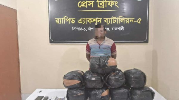 চাঁপাইনবাবগঞ্জ প্রতিনিধিঃ আজ চাঁপাইনবাবগঞ্জ সদর উপজেলায় র্যাব-৫ এর অভিযানে বিপুল পরিমাণ গাঁজা উদ্ধারসহ এক মাদক ব্যবসায়ীকে গ্রেফতার করা হয়েছে। এসময় তিনটি মোটরসাইকেল ও দুটি মোবাইল ফোনও জব্দ করা হয়।