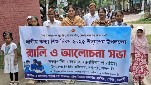 বিশেষ প্রতিনিধিঃ রাজশাহীর বাঘায় কন্যা শিশুদের সুরক্ষা ও অধিকার প্রতিষ্ঠায় সব ধরনের ভেদাভেদ ও বৈষম্য দূর করে সচেতনতা তৈরিতে প্রতি বছরের ন্যায় জাতীয় কন্যাশিশু দিবস উপলক্ষে র্যালি ও আলোচনা