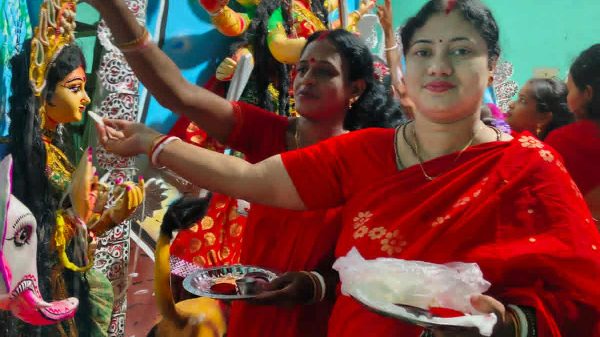 শিবগঞ্জে সিঁদুর খেলার মধ্য দিয়ে দুর্গোৎসবের বিদায়