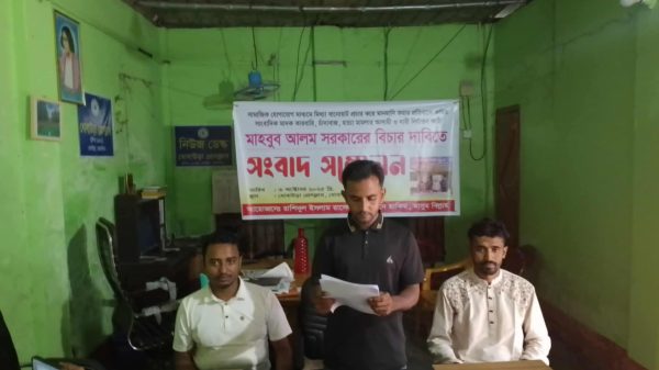 # ধোবাউড়া(ময়মনসিংহ) প্রতিনিধিঃ ময়মনসিংহের ধোবাউড়ায় সামাজিক যোগাযোগ মাধ্যমে মিথ্যা প্রচারনায় মানহানি করার প্রতিবাদে কথিত সাংবাদিক , চাঁদাবাজ, মাদক ব্যবসায়ী, হত্যা মামলার আসামী ও নারী নির্যাতন কারী মাহবুব আলম সরকারের বিচার