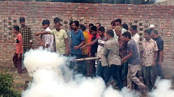 # সিদ্ধিরগঞ্জ প্রতিনিধিঃ সিদ্ধিরগঞ্জে ডেঙ্গু প্রতিরোধে স্বেচ্ছাসেবক দলের উদ্যোগে মশক নিধন কর্মসূচি পালন করা হয়েছে। বৃহস্পতিবার (৯ অক্টোবর) বিকালে নারায়ণগঞ্জ সিটি কর্পোরেশনের (নাসিক) সিদ্ধিরগঞ্জের এক নম্বর ওয়ার্ডের মিজমিজি তালতলা গাজী