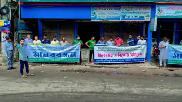 মোঃ আলফাত হোসেনঃ সাতক্ষীরার শ্যামনগর উপজেলার ভেটখালী বাজার সংলগ্ন ইসলামী ব্যাংক পিএলসি কর্তৃক স্থাপিত এটিএম বুথটি অপসারণের পরিকল্পনার প্রতিবাদে এলাকাবাসীর উদ্যোগে মানববন্ধন অনুষ্ঠিত হয়েছে। শনিবার সকালে ভেটখালী বাজারের সামনে