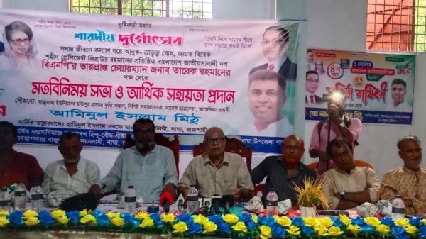 বিশেষ প্রতিনিধি: সনাতন ধর্মালম্বীদের ‘শারদীয় দুর্গোৎসব’ উপলক্ষে মতবিনিময় সভা ও মন্দিরে আর্থিক সহায়তা প্রদান প্রদান করা হয়েছে। বাংলাদেশ জাতীয়তাবাদী দল (বিএনপি)’র ভারপ্রাপ্ত চেয়ারম্যান তারেক রহমানের পক্ষ থেকে আর্থিক সহয়তা