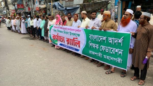 নাজিম হাসান.রাজশাহী জেলা প্রতিনিধি : রাজশাহীতে বিভিন্ন আয়োজনের মধ্যেদিয়ে শিক্ষক দিবস পালন করা হয়েছে। গতকাল রবিবার সকাল সাড়ে দশটায় নগরীর জিরোপয়েন্টে সমাবেশ শেষে অনুষ্ঠিত হয় বর্ণাঢ্য র্যালি,বর্ণাঢ্য র্যালিটি সাহেব