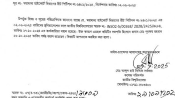 নাজিম হাসান,রাজশাহী জেলা প্রতিনিধি: রাজশাহী বিশ্ববিদ্যালয়ে (রাবি) চলমান পূর্ণাঙ্গ শাটডাউন সাত দিনের আল্টিমেটাম দিয়ে স্থগিতের ঘোষণা দিয়েছে অফিসার্স সমিতি। তবে পূর্ণদিবস কর্মবিরতি বহাল রেখেছে জাতীয়তাবাদী শিক্ষক ফোরাম। আজ বুধবার